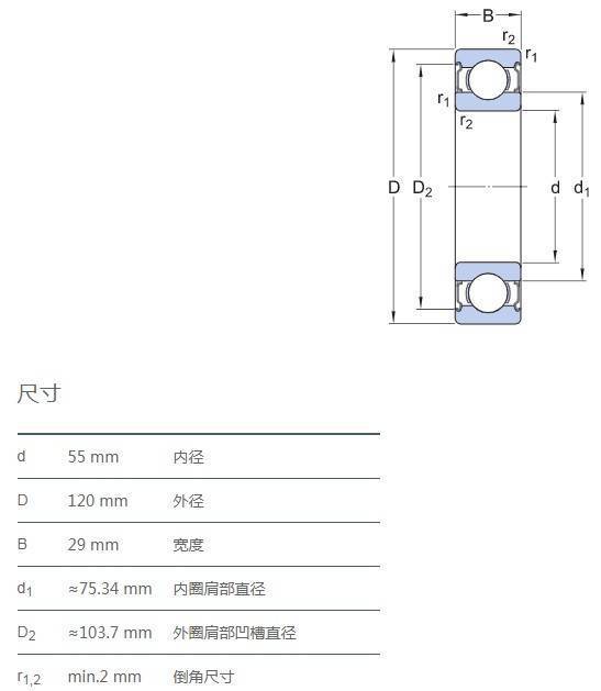 滿球軸承,由于在內(nèi)圈及外圈上設(shè)計(jì)了填球口,可比深溝球軸承多裝球。因?yàn)橛刑钋蚩?,所以不適于軸向負(fù)荷大的用途。滿裝球軸承尺寸與62型及63型的單列深溝球軸承主要尺寸相同。除開放型外,也有鋼板防塵蓋ZZ型。另外,使用軸承時(shí),盡可能將外圈的填球口位置作為非載荷圈。保持架為沖壓保持架。